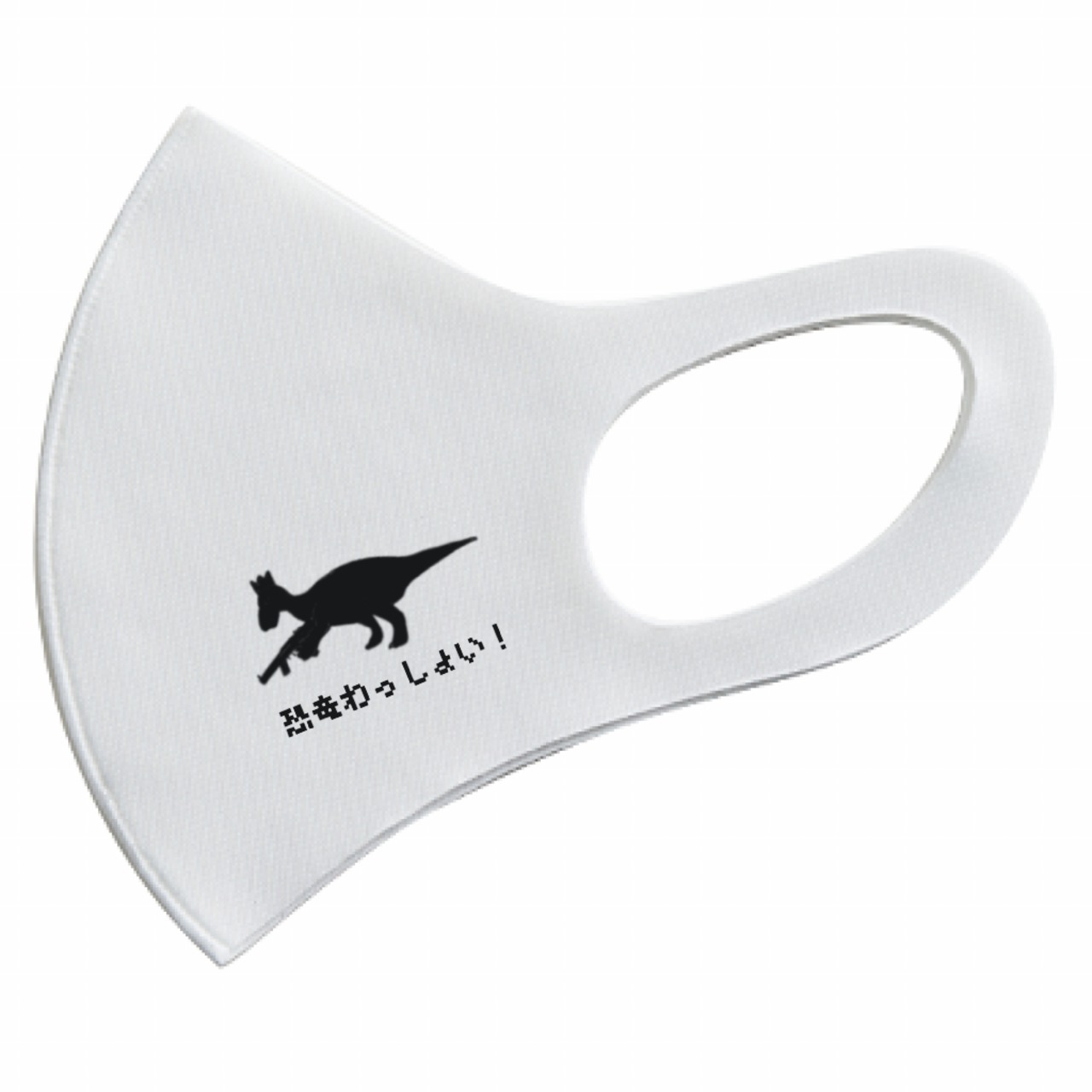 恐竜わっしょいマスク白シンプル(イグアノドン✖️mp5sd6)